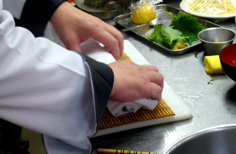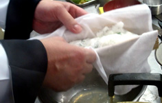 巻きすで挟んでお湯を切る |