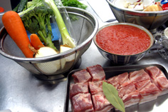 材料 4人分 豚バラブロック 400g 玉ねぎ 1/2個 ニンジン 1/4本 セロリ 1/2本 ダイスカットトマト缶 400g ローリエ 1枚 ブロッコリー 1/4個 オリーブオイル 大さじ1 |