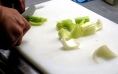 セロリの葉を取り |