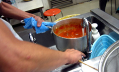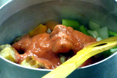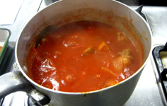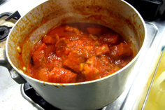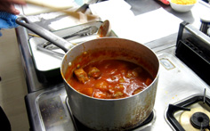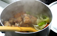 この料理は、1時間位煮込まないと味が出ない。水分が少なくなったら水を足す |