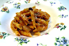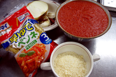 材料 4人分 ペンネ 300g 赤唐辛子 4本 ニン二ク 4片 ダイスカットトマト缶(ミキサーにかける) 400g タマネギ 1/2個 パルメザンチーズ 20g オリーブオイル 大さじ2 |