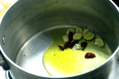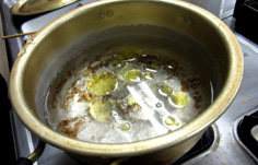香りが出たら、いったん唐辛子を取り出す。唐辛子は後で入れる |