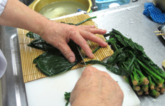 他のホウレン草を横に重ねて巻く |