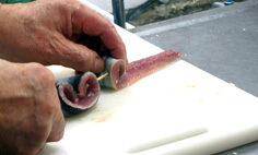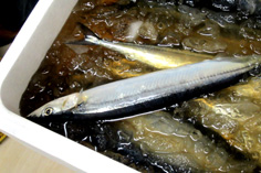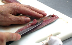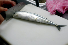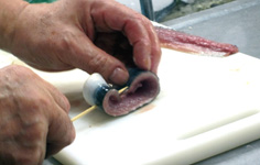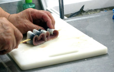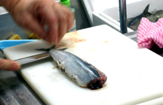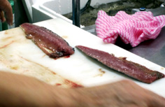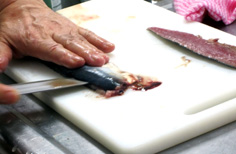 頭を落としてはらわたを取り、血合いを綺麗にする |