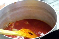 ザルで漉したトマトを加え、軽く塩・コショウをする |