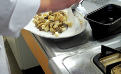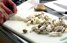 その間に、茸を2cm角に切る |