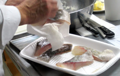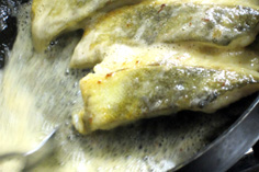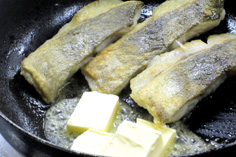 材料 4人分 真鱈 120g×4切れ 小麦粉 適量 無塩バター(冷たくしておく) 100g サラダオイル・オリーブオイル 各適宜 |