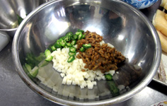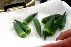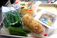 材料 4人分 小揚げ(半分に切って開く) 4枚 納豆 1パック オクラ 1袋 長いも 5cm 妻楊枝 8本 |