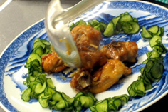 キュウリ 2本 ネギ・ショウガ・ニンニク(各みじん切り) 各大さじ1/2 ゴマ油 小さじ1 ※全体の合わせ調味料 醤油・黒酢・酒 各大さじ1 塩 小さじ1/4 砂糖 大さじ2 水 大さじ3 |