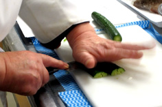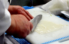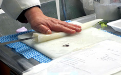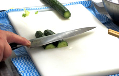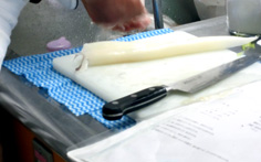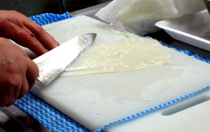 横5cm、幅2cmの大きさに切って、茹でる。茹で過ぎない様に注意 |
