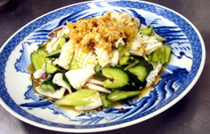 材料 4人分 イカ 2杯 キュウリ 1/2本 セロリ 1/2本 ※合わせ調味料 ネギ(みじん切り) 1/2本 ショウガ(みじん切り) 少々 山椒の実または粉 小さじ1 酒・醤油・砂糖 各大さじ2 酢 小さじ1 ゴマ油少々 |