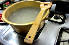 15分ほど途中かき混ぜながら、やや柔らかめにゆでる |