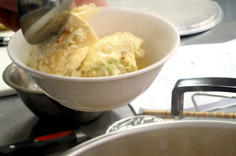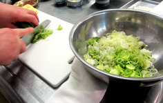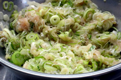 ネギは小口切り。青いところも使う |