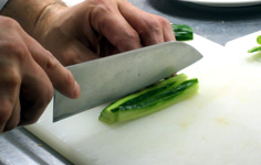 キュウリは上と両側の皮を少しむく |