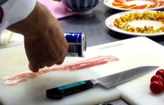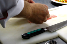 さらに身と皮の間に庖丁を入れ、切り落とす |