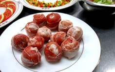 材料 4人分 プチトマト 8個 豚バラスライス(しゃぶしゃぶ用) 8枚 小麦粉 少々 ※飾り用 赤パプリカ・黄パプリカ 各1/4個 キュウリ 1/4本 ※合わせ調味料 水 15cc 砂糖 18g 醤油 小さじ1/2 中国たまり 大さじ1 黒酢 50cc 水溶き片栗粉 大さじ1 (中国たまりは入れなくとも良いが、風味と色と照りが出る) |