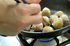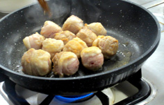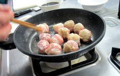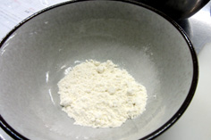 小麦粉を薄くまぶす。粉は焼く寸前に付けること |