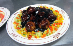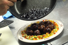 皿の中央にのせ、タレもかける |