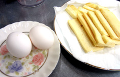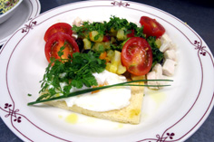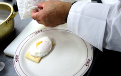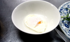 トマトを飾る。卵をソースとして頂く! |