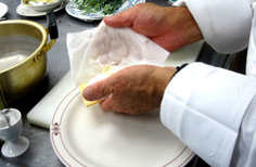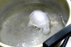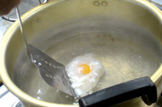 卵を器に割りいれ、静かに入れる |