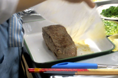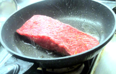 冷たいところに肉を入れて、火をつける |