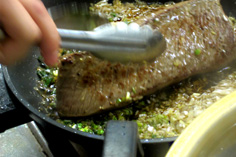 残ったソースに、肉汁があれば加え(うまみがある) |