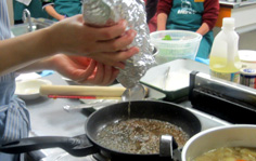その上から、二重にしたアルミホイルをしっかり被せ、極く弱火で約10分煮る。途中で返す |