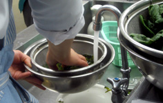 ほうれん草を流水で良く洗い |