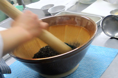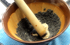 あたり鉢でゴマを良くあたり |