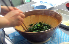 食べる直前にほうれん草を和える |