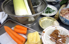 材料 4人分 大根 1/5本 ニンジン 中1/2本 ゴボウ 1/3本 油揚げ 1枚 長ネギ 1/2本 出し汁 800cc 味噌 60〜70g位 酒粕 20〜30g位 |