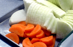 大根は銀杏切り、ニンジンは小さいときは半月に |