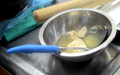 酒粕と味噌を合わせて鍋に加え、味をみる。全部入れずに加減しながら |