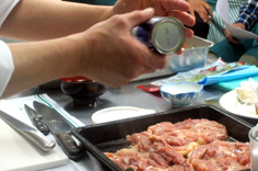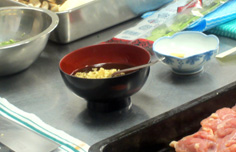 鶏モモ肉のクミン風味エスニック風の材料 6人分 鶏モモ肉3枚 ※マリネ用ソース 海鮮醤(カイセンジャン)50cc オイスターソース 30cc 白ワイン 30cc ニンニク・ショウガ(みじん切り) 各3〜4g 醤油 5cc ※香り用 白ゴマ・黒ゴマ 適宜 クミンシード(パウダーは不可) 適宜 |