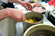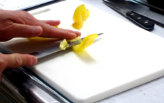 ラタトウィユを作る パプリカの中の、白いところを取り除き |