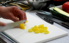 2cm角に切る。赤パプリカ、青ピーマンも同様 |