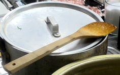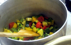 フタをして、弱火で煮る。水分がなくなり、野菜が柔らかくなったら火からはずす。焦がさないように途中でまぜる |