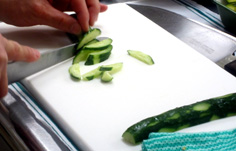 キュウリは所どころ皮をむき |