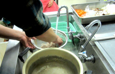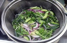 野菜は、流水に5分ほどさらす。水気を良く切る |