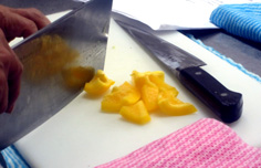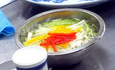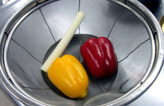 パプリカは、スペアリブが蒸しあがる頃に、一緒に蒸す |