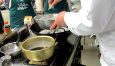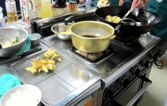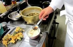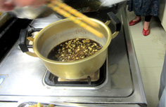 天丼のタレを温めておく |