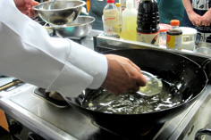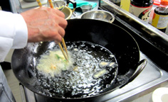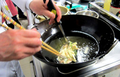 最初に揚げ玉を揚げる |