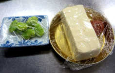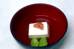 材料 絹ごし豆腐 ソラマメ(茹でて薄皮をむく) 梅干し