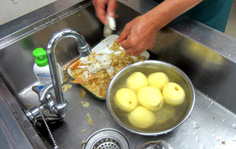 炊飯器の目盛りに合わせます。足りない時は水をプラス |