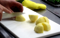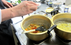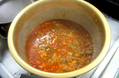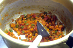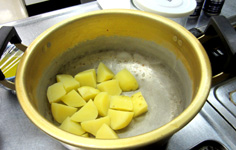 このような状態になったら、茹でておいたジャガイモを入れ、5分煮込む。 |