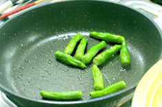 付け合せのしし唐は、ヘタを取り、竹串などで穴を空けておく |