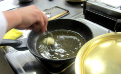 焦がさないように。時々は火からはずしながら、じっくり焼く |