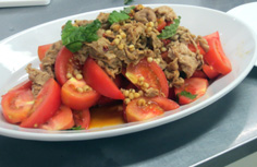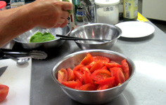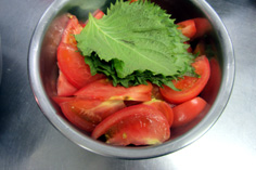 材料 4人分 トマト 3〜4個 大葉 8〜10枚 豚小間肉 150g 茹でた雑穀(ハト麦) 大さじ2(一晩水に漬け茹でる) ゴマ油 大さじ1 ※合わせ調味料 トウバンジャン 小さじ1〜 醤油 大さじ2 すりおろしニン二ク 適量 |