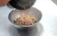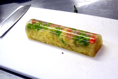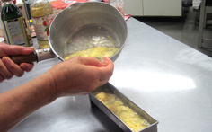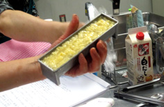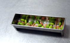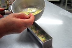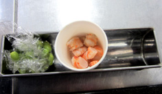 一度に入れるとエビと枝豆が浮き上がってしまう。型を冷たく冷やす |