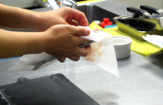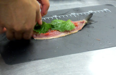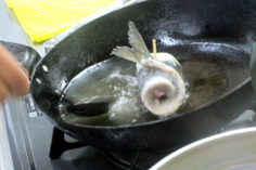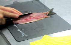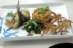 鰯はウロコを取る。頭を斜めに落とす 腹側の頭に近い部分を、三角に落とす 中のワタをかき出す 水道の水で、腹の内側の血を綺麗に洗い流す キッチンペーパーで、水気を拭き取る。腹の内側も丁寧に 鰯を横に持ち 指を中骨の上に沿わせて引き、身を骨からはずす 綺麗に広がる 反対に向けて、同様に 中骨がはずれる 骨を取り除き、庖丁を斜めにして腹側の骨をすきとる 向きを変えて反対側もすきとる バットに入れ、塩少々と酒をかける。時間があるときは、10分程度置く キッチンペーパーで水気をとる 練り梅をぬる 大葉を2枚並べ 尾に向って、巻いてゆく。妻楊枝を挿して止める ビニール袋等に薄力粉を入れ、1個づつ粉をまぶす。余分な粉はたたいて落とす フライパンに油を入れ、揚げ焼きにする 中火で油をかけながら焼く 焦げないようにじっくり、薄いキツネ色になるまで揚げる 皿に盛るときに、妻楊枝をはずす。三種盛りにするとお洒落。季節のもみじなどを添えて完成! ニラのお浸し 材料